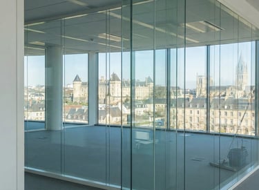 Lavage de vitres toutes hauteurs, cloisons vitrées et shampouinage moquettes.
