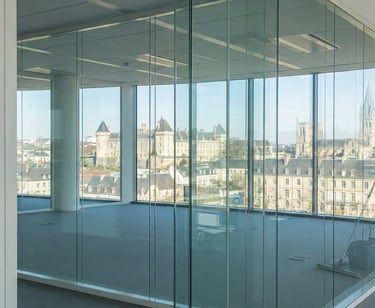 Lavage de vitres toutes hauteurs, cloisons vitrées et shampouinage moquettes.